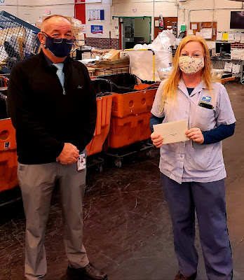 Fort Myers Letter Carrier, Melinda Smalls (right) submitted a lead that generated over $38,000.00 in new revenue. Smalls was presented with a letter of appreciation from Suncoast District Manager Steve Hardin (not pictured) by Fort Myers Officer In Charge (OIC), Phillip Fleener (left).